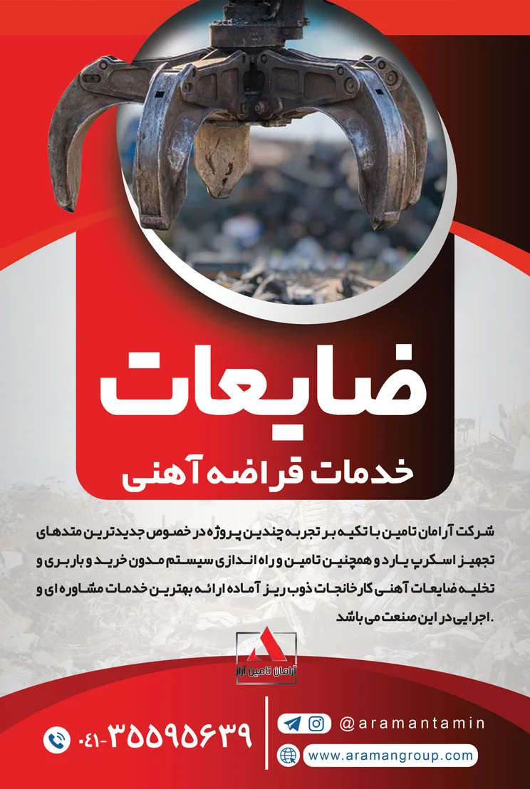 شرکت آرامان تامین با تکیه بر تجربه چندین پروژه در خصوص جدیدترین متدهای تجهیز اسکرپ یارد و همچنین تامین و راه اندازی سیستم مدون خرید و باربری و تخلیه ضایعات آهنی کارخانجات ذوب ریز آماده ارائه بهترین خدمات مشاوره ای و اجرایی در این صنعت می باشد.